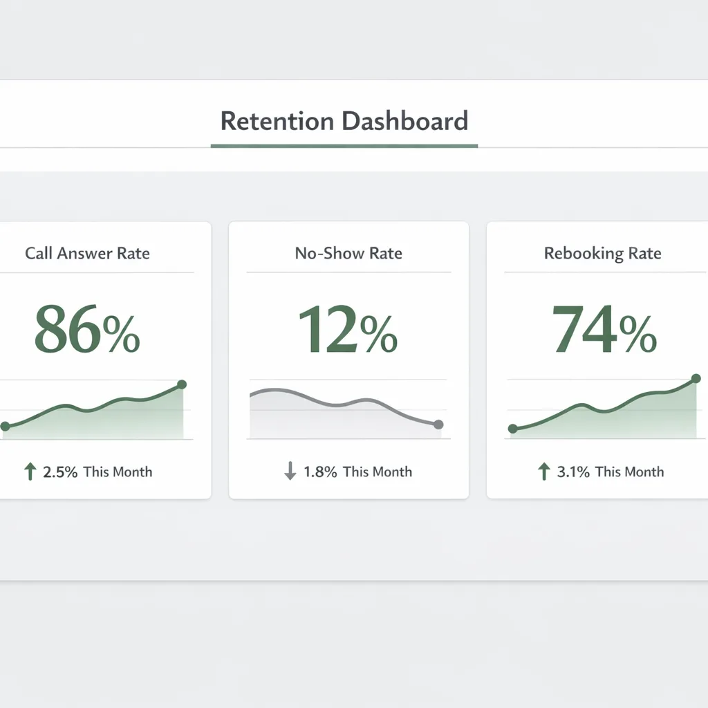 | Rebooking rate | Indicates continuity of care | Increase month over month | Standardize next-step scheduling at checkout |